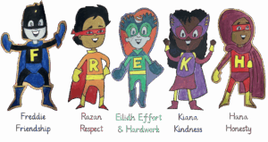 Our values have been identified, developed and agreed in consultation with all pupils, staff, families and members of our wider community. We encourage everyone in our school community to follow these values to create a positive, harmonious atmosphere.