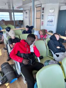 We woke up around 7am. We were in a bit of a rush because we slept in. But we managed to pack everything and get to the ferry on time. The whole group slept the whole journey across the sound of Harris.