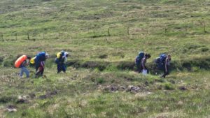 Once at Leverburgh we studied the maps and we made sure we had plenty of water then started our journey. The first part of the journey was minor roads and was easy. We then reached the path that would take us through the mountains, the Hebridean Way. The mountain path was a bit wet, undulating and quite difficult, especially because of hot weather. Once we reached the top of the hill the descent was nice and easy. Once we reached the road we filled up on water and had lunch. As it was so hot it was decided it best to cut the route short and get to camp. The best bit about being at camp was playing volleyball and football at the beach.