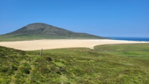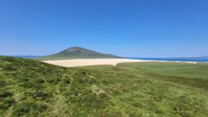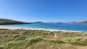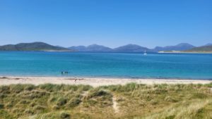 Today the groups took the ferry from Berneray, across the sound of Harris (1 hr) to Leverburgh (South Harris). They then took the Hebridean way to Scarista on the west coast. Groups, tonight are camping at Horgabost.