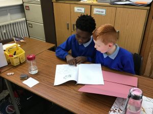 Over the last few weeks P2b have worked hard to write their own fiction books. They designed their own front covers and included a blurb on the back. The results were so good that we we visited P1b and P4/3 to read our stories to the children. Everyone was very impressed! 😀
