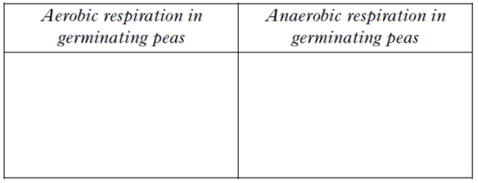 e) The following list contains some features of aerobic and anaerobic respiration in germinating peas.
