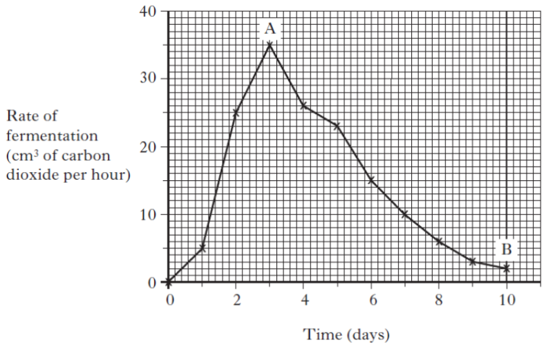 The rate of fermentation was measured and the results are shown in the graph below.