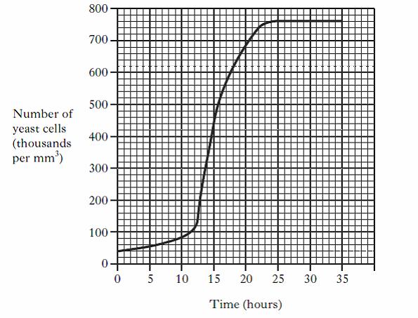 | 5. | Yeast cells were grown and their numbers recorded over a 35 hour period. The results are shown on the graph. How many times greater was the maximum number of yeast cells compared to the number at the start?