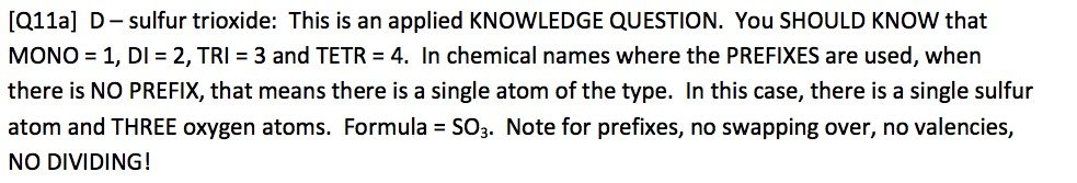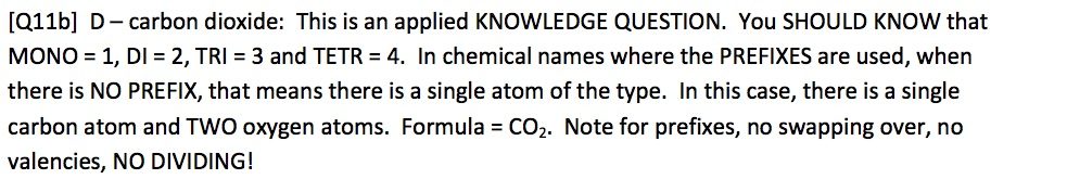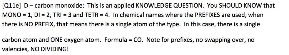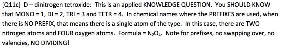 Using PrefixesWrite the chemical formula for the following compounds: |