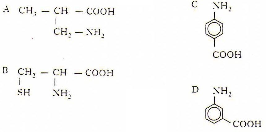 18. Some amino acids are called α(alpha) amino acids because the amino is on the carbon atom next to the acid group. Which of the following is an α(alpha) amino acid?