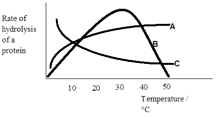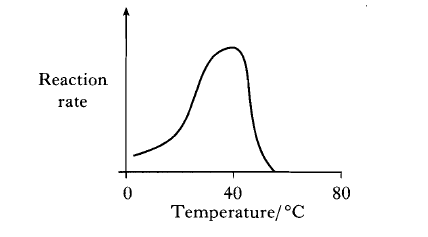 (b) The graph shows how the rate of the enzyme catalysed reaction changes with temperature.