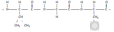 b) Draw the structural formulae for the molecules formed when the fragment is hydrolysed.