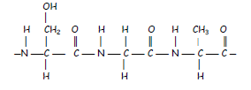 a) Draw the structure of part of the polymer chain that would be formed when three glycine molecules polymerise.