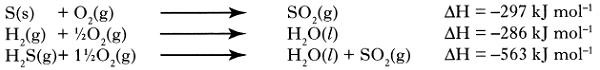 H2S(g) + 1 ½ O2(g) ® H2O(l) +SO2(g) ΔH = d