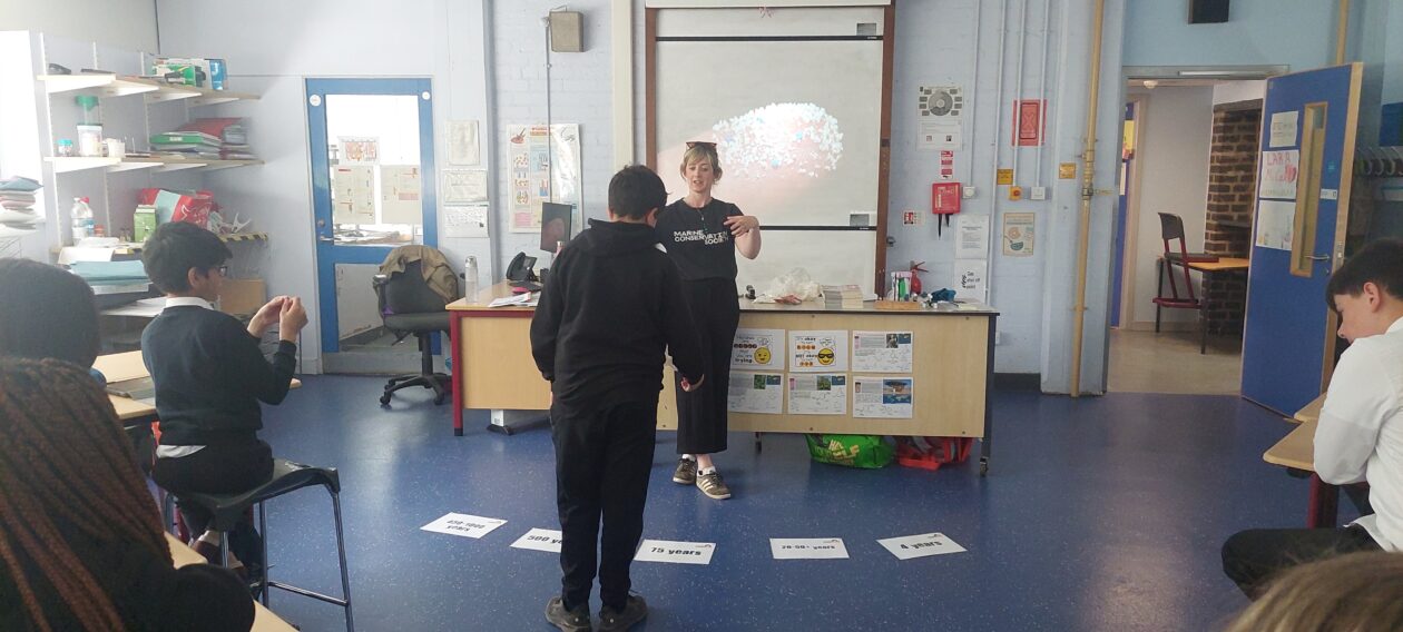The S1 Protecting Wildlife class went to Troon to do a beach clean. This was organised by one of the teams who were committed to tackling pollution to help protect marine wildlife. This team reached out to the Marine Conservation Society for advice about the beach clean. As a result, Kirsty from the Marine Conservation Society came to KPSS to deliver an interactive workshop about Marine Pollution for an S1 Science class.