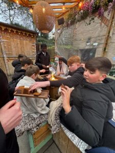 Fondue, fur blankets and fire pits for our French lot! S3 pupils across our French classes, went on a trip to Brel in Glasgow to try poutine, fondue and s’mores. There was no better weather for huddling under cosy blankets beside cosy fire pits!