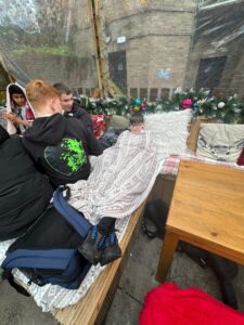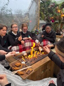 Fondue, fur blankets and fire pits for our French lot! S3 pupils across our French classes, went on a trip to Brel in Glasgow to try poutine, fondue and s’mores. There was no better weather for huddling under cosy blankets beside cosy fire pits!