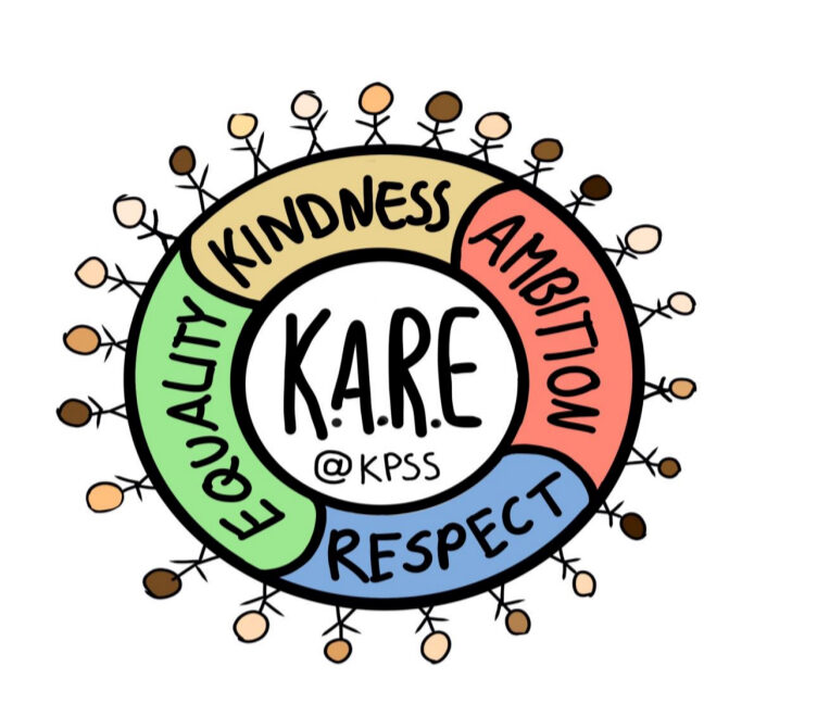 We the shared cake, listened to our bands and launched our school values – K.A.R.E @ KPSS from banners to show off our new logo too – Kindness, Ambition, Respect and Equality!