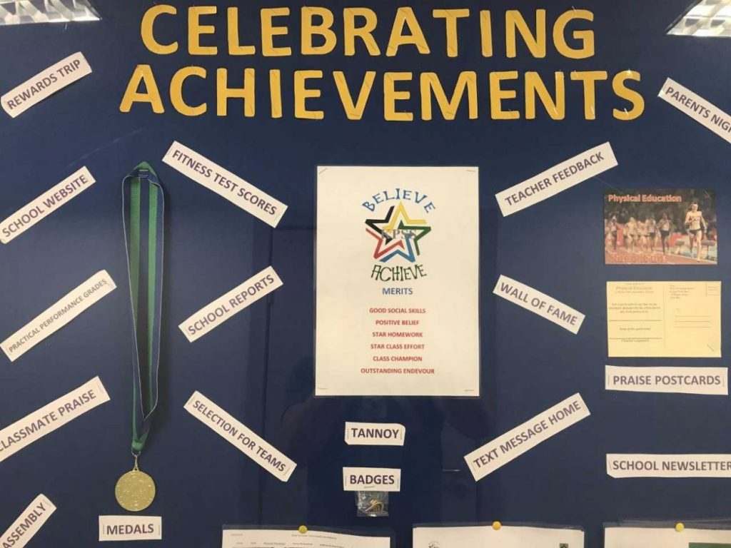 In the Health and Wellbeing Faculty we believe it is vital to celebrate the achievements of our young people. There are a number of ways in which we do this on a regular basis to ensure pupils feel valued and are encouraged to continue to achieve. Below is a picture of one of our notice boards that highlights some of the many ways we recognise achievement.