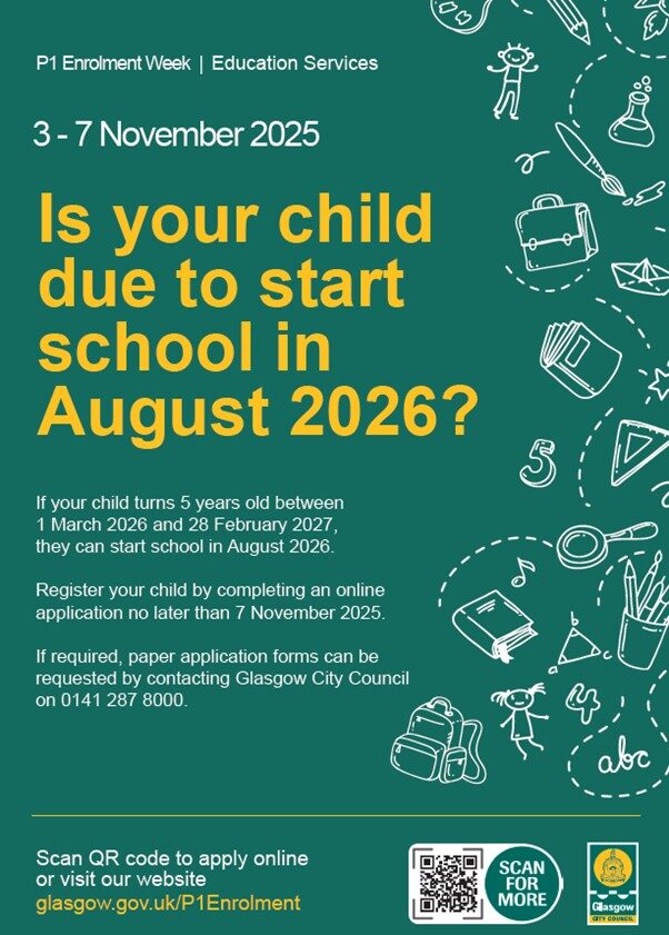 Registration for Primary 1 usually takes place in November and is advertised in the local press. If you have any questions, you can get in touch with the school office by phone or email using the contact details in the Contact us section or though the School Information Page