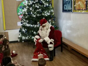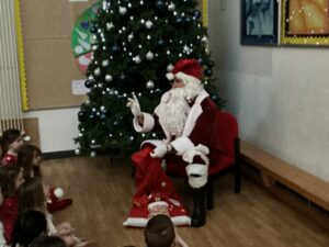 On Thursday, the children celebrated the end of term with a party and were delighted to receive a special visit from the man himself — Santa Claus! There were gasps of excitement and lots of cheers as they sang Jingle Bells, listening carefully for the hooves of Santa’s reindeer.