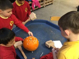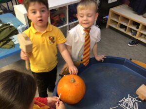 In Literacy, we have been focusing on character description. Using the witch from Room on the Broom as our inspiration, the children described her hat in detail and created a story sequence featuring the different characters from the story. We are continuing to make progress with our tricky words and are growing in confidence when reading and recognising them.