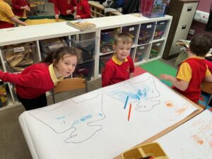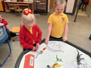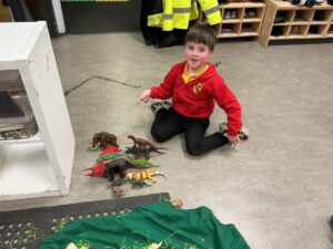 This week in P2/1, the children have continued to develop their learning about dinosaurs. They enjoyed exploring dinosaur habitats and learning about which dinosaurs lived on land and which lived in the sea.