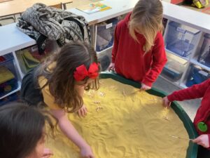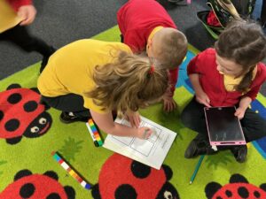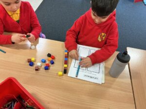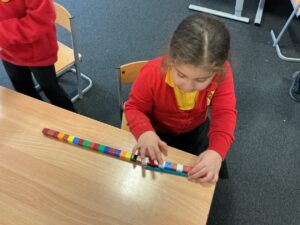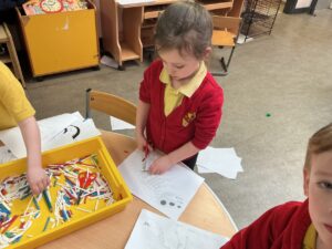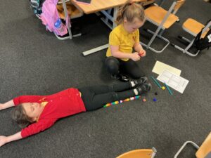 In maths, the focus was on measure. The children are becoming increasingly confident using concrete materials to measure accurately. They worked very well in pairs to count and measure a range of objects and even measured each other, demonstrating excellent teamwork.