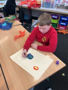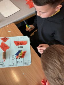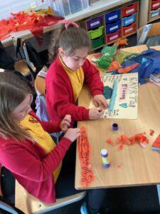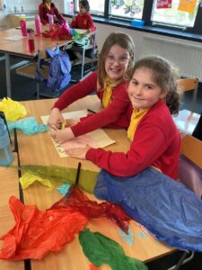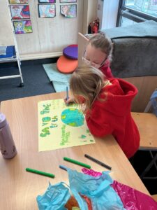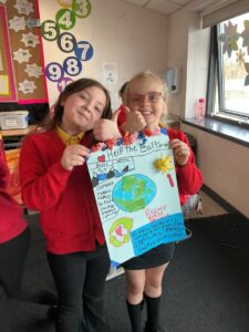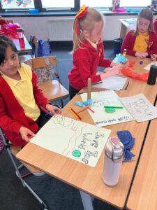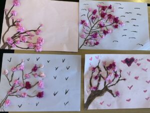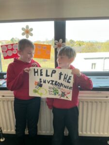 In spelling, we recapped on the first phoneme families we learned back in Term 1 – ‘ae’ and ‘ee’ – and in Reading, we focussed on comprehension of our reading books. In Numeracy, we applied all of our knowledge of fractions to worded problems and in Writing, the children were introduced to this Term’s genre: Report Writing. To properly mark the beginning of Spring, we also created cherry blossom tree art. Finally, for Earth Day, we created posters, reusing scrap resources, to raise awareness of how to help our environment.