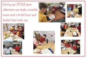 a balanced argument and have begun exploring features and strategies for non fiction texts. We have begun a new mini topic on Spring and new life. We enjoyed our pastel artwork inspired by this. We had fun during our STEM open afternoon where we designed and made a marble maze and tinfoil boat and had to test them to see how well they worked.