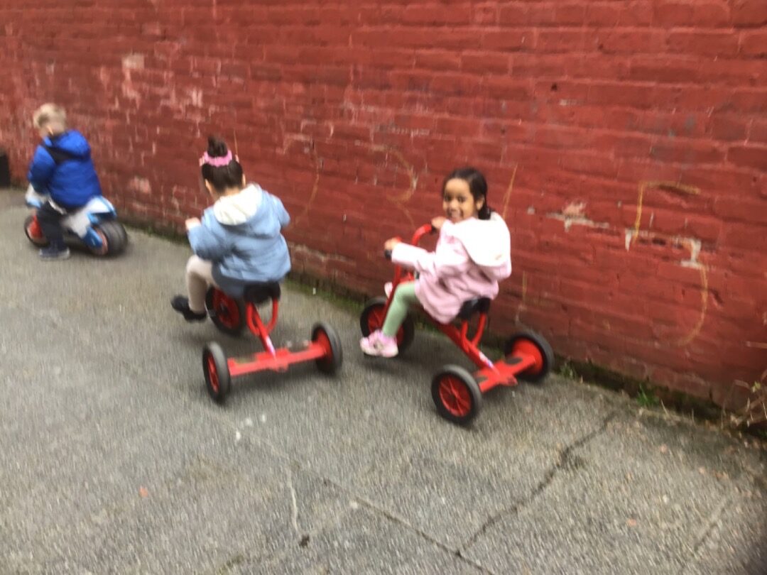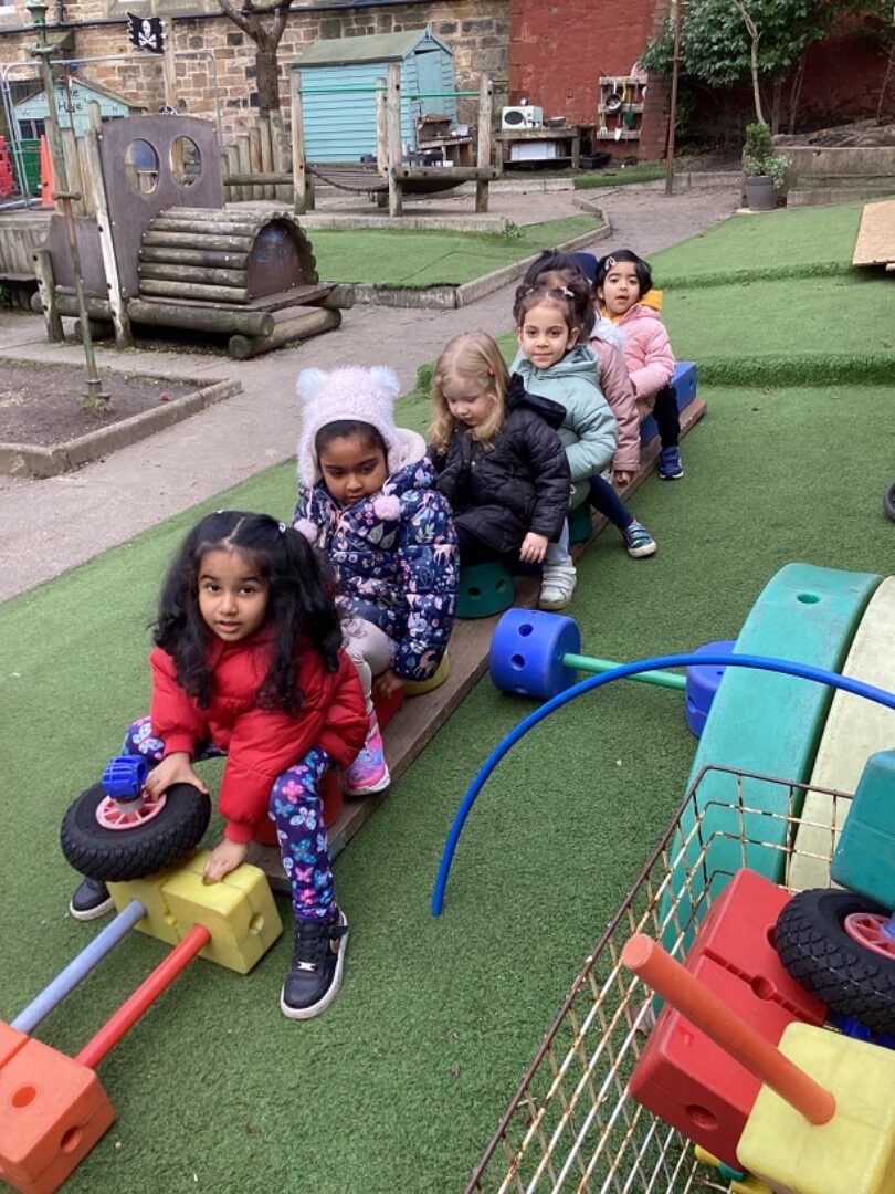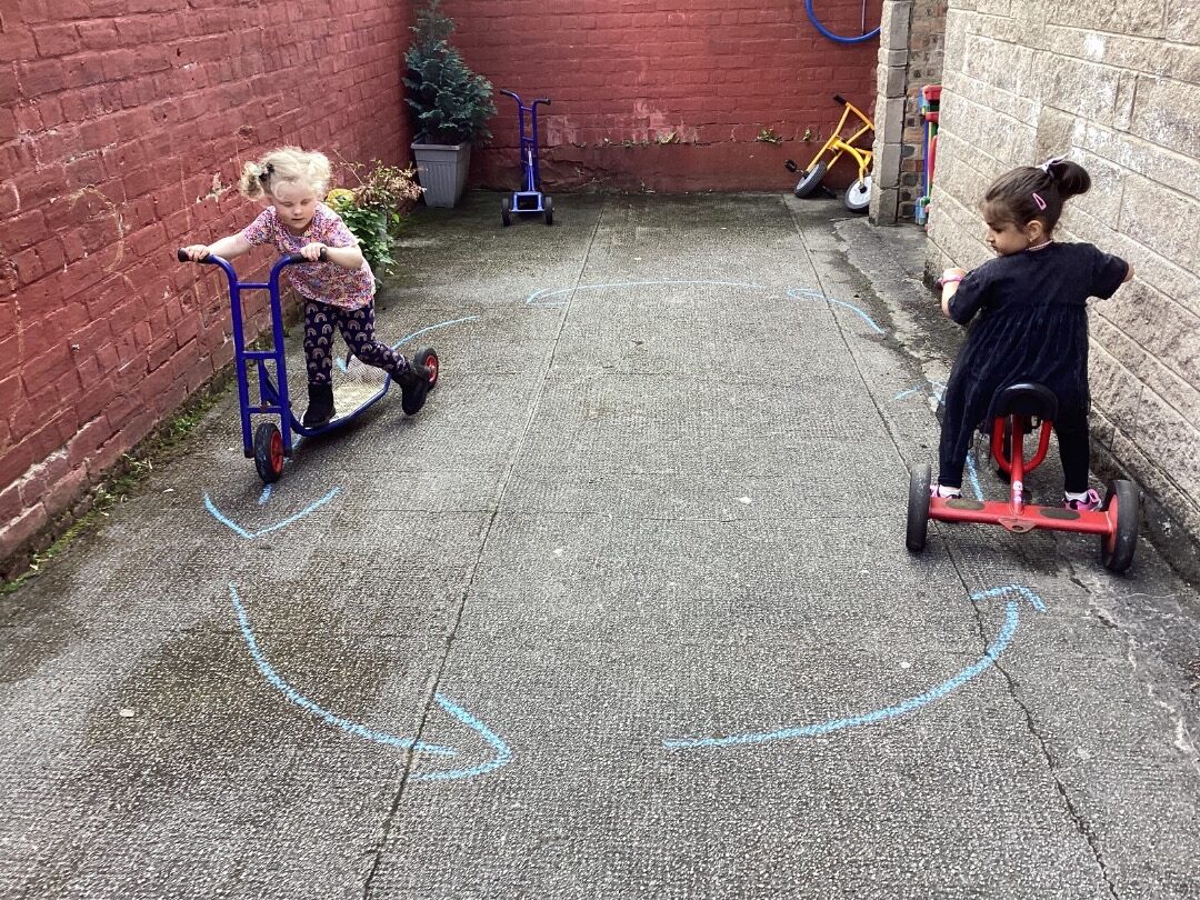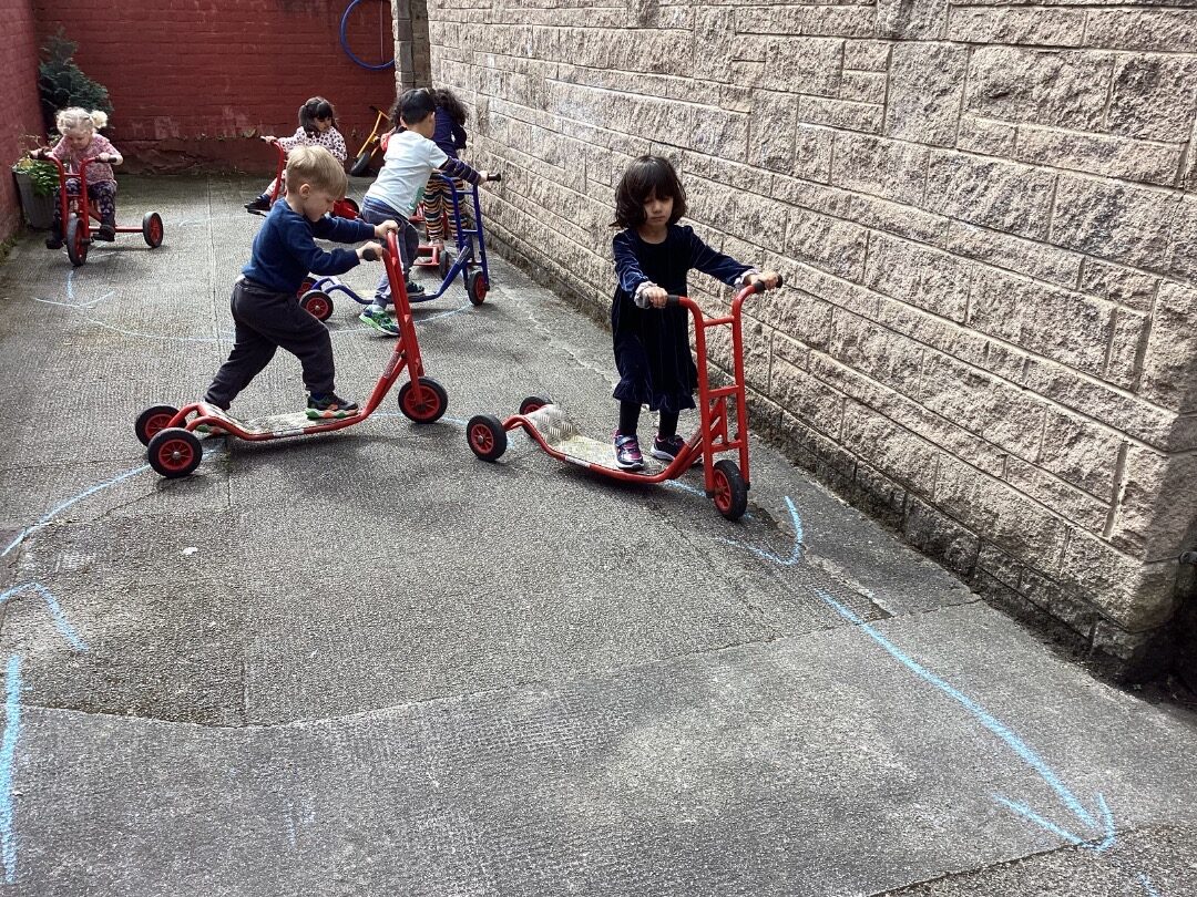 There has been lots of sunny weather for the past few weeks. The children have been enjoying playing and learning in the nursery garden. They have been practising their cycling skills.