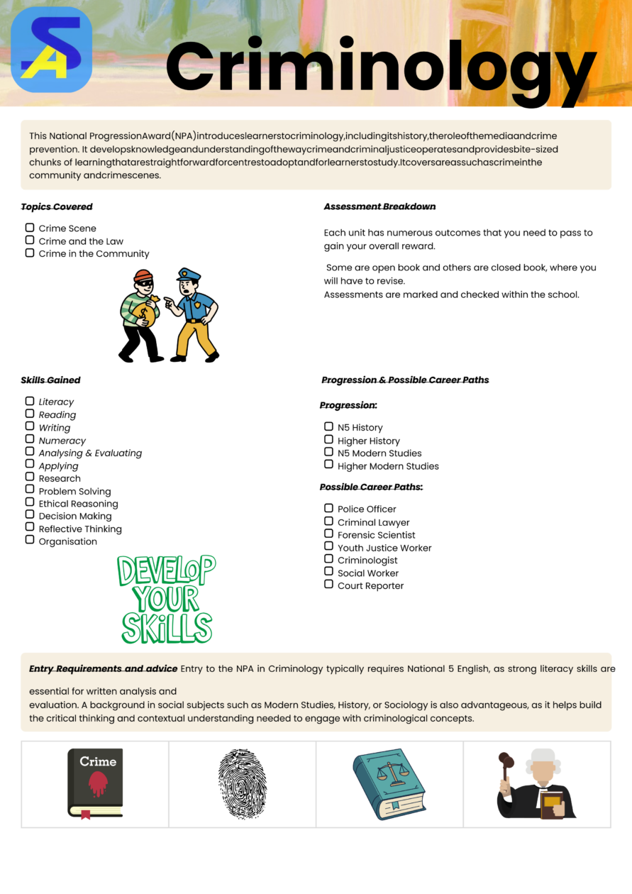 Criminology Current Staff Members: Ms J Ashley – Faculty Head Ms M Penman Criminology – NPA Further Links: NPA Criminology Level 5 SQA NPA Criminology Level 6 SQA