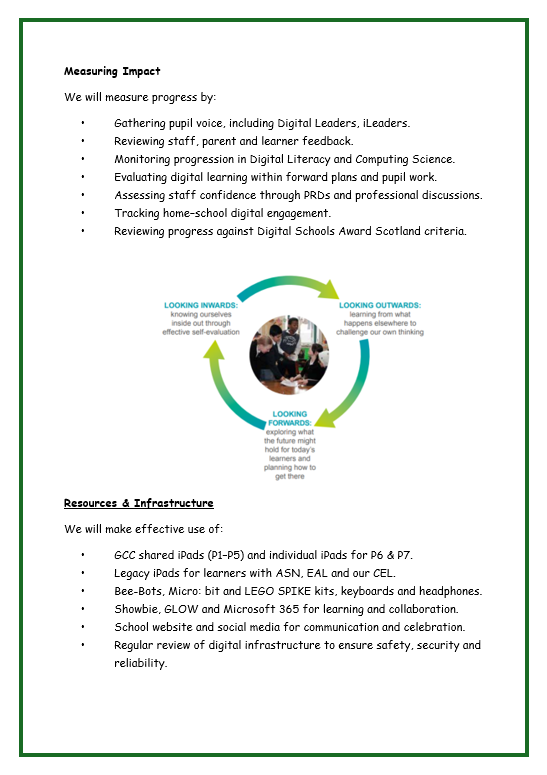 This approach aligns with the Digital Glasgow Strategy (2024–2030), promoting inclusion, participation, digital wellbeing, and preparation for life and work in a digital society. Explore our Digital Learning Strategy below.
