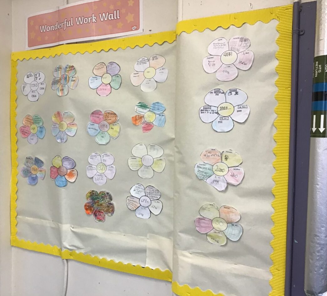 Primary 5 learned how to represent numbers in different ways. They created number flowers to show their working.