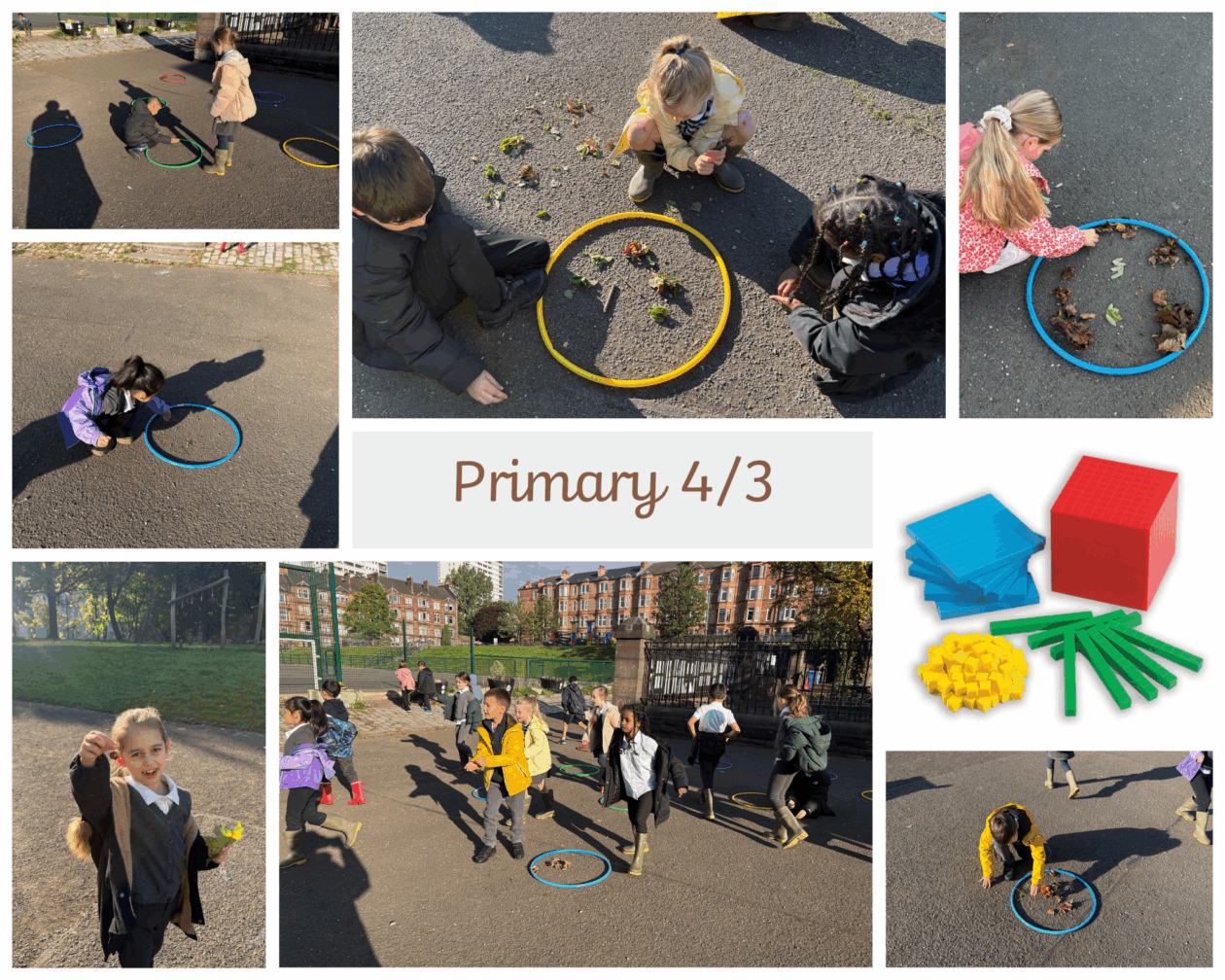 Primary 4/3 explored how natural objects could represent numbers. They challenged each other to represent numbers using the objects they gathered. Primary 4/3 also explored what 100 of something looks like with real life objects.