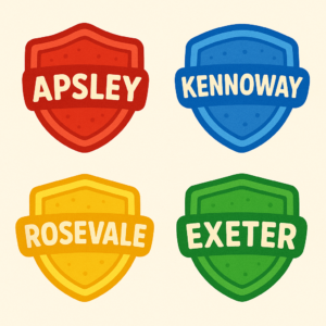 Our four houses are Apsley, Kennoway, Rosevale and Exeter, all named after local streets.