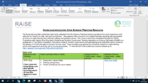 To support learning, teaching and assessment of science in early learning and childcare settings and primary schools, home learning links have been extracted from the Science Planning Resource. Glasgow Science Centre, Aberdeen Science Centre and Easter Bush Science Outreach Centre have recently produced learning at home STEM videos. We’ve mapped these into the relevant experiences and outcomes for early to second level and share these in this document. Many of the videos could also be used to support learning in the classroom.