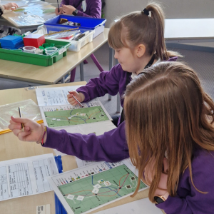 I ran the engineering sessions, discussing with the pupils how we choose an optimal route based on the constraints within the local area. By assigning penalty points for factors such as journey time, number of bogs and number of bridges required, we could quantitatively assess which route was best. We were able to debate everyone’s opinions on which route would be optimal, and therefore which we should construct.
