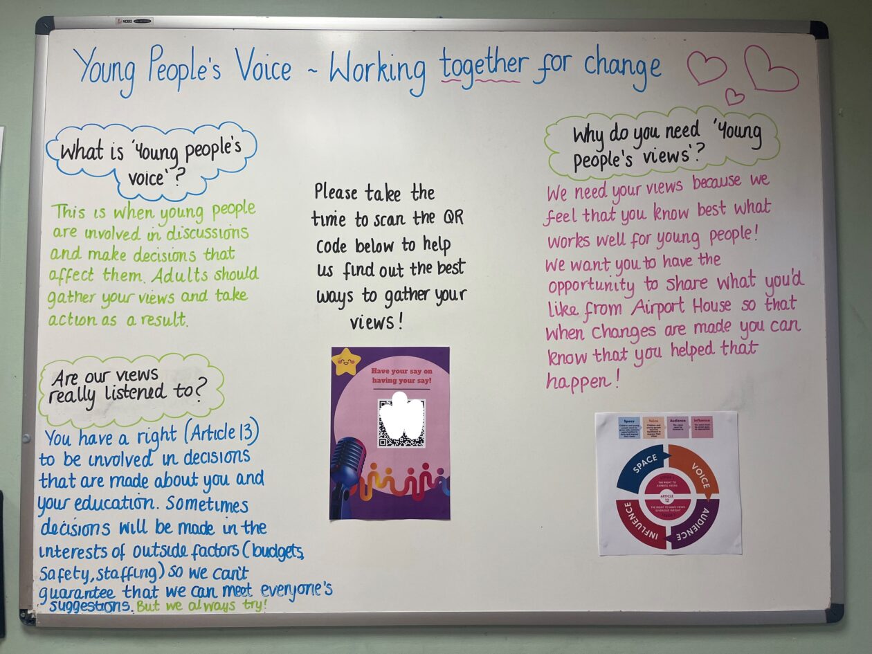 As part of our Centre Improvement Plan for 2024/25, we will be focusing on finding new ways to include our young people’s voices throughout everything that we do within Airport House. This is in line with Article 12 of the UNCRC.