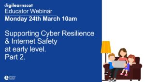 Within the early level curriculum in Scotland, children are supported to assess and manage risk and understand the impact of risk-taking behaviour in all aspects of play and learning; this includes the safe and secure explorations of digital technology – Cyber Resilience and Internet Safety.