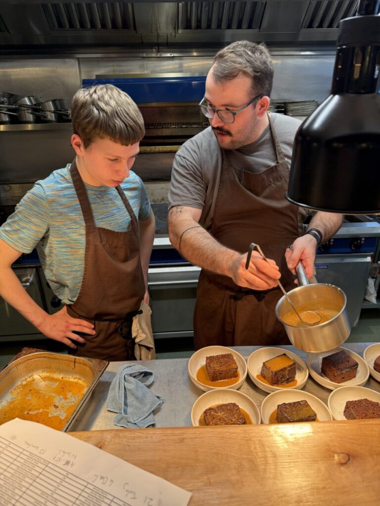Jack Crosbie and Alfie Copland, two of the senior pupils, took the reins of the dinner service for the junior pupils. Braidyn Gordon, another senior pupil, was given the incredible opportunity to work in the kitchen under the guidance of Arran Seymour himself.