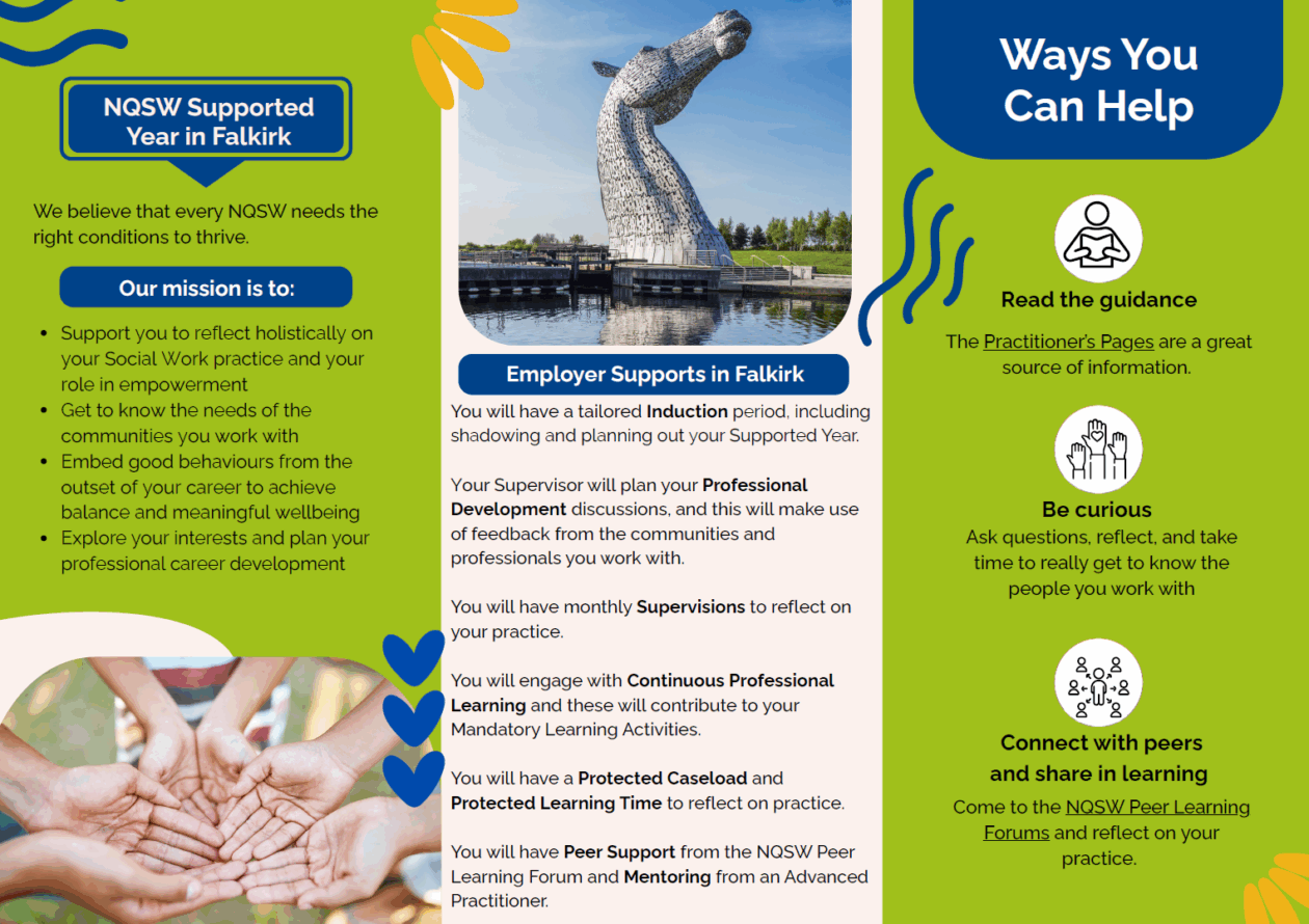 This page should provide an overview of the Supported Year process in Falkirk. If there’s any further information you wish to discuss, or need accessible versions of these materials, please contact the Social Work Workforce Development Team via socialservices.training@falkirk.gov.uk.