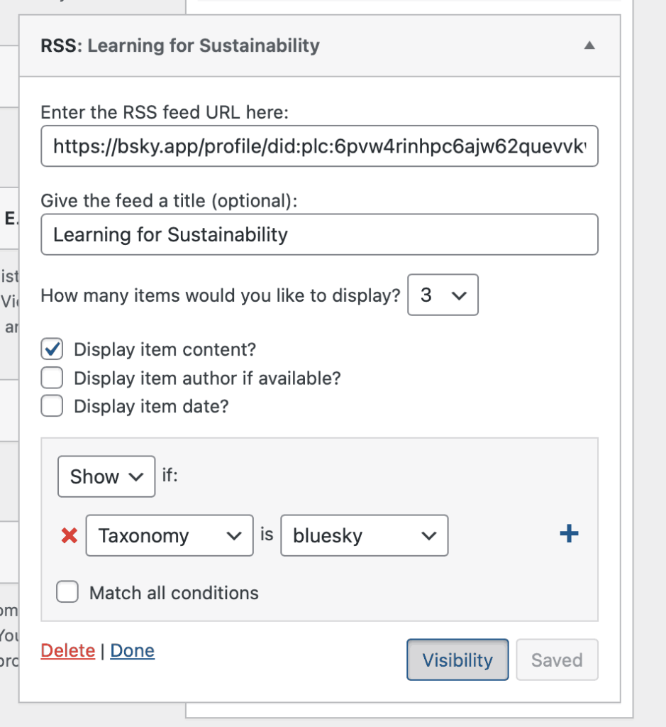 Bluesky supports RSS so you can bring an RSS feed from bluesky into Glow Blogs. It is a bit tricky to find the RSS feed from Bluesky. You can either look at the source code of the page! or use another service to find it quickly. RSS Lookup – Find RSS feeds on any URL