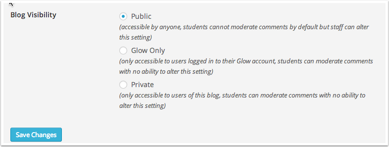 Glow blogs can be set to have three different privacy settings: