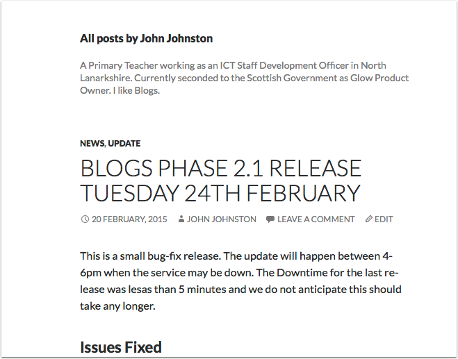 This shows the Authors page in a twenty fourteen themed blog. My biographical information is shown at the top.