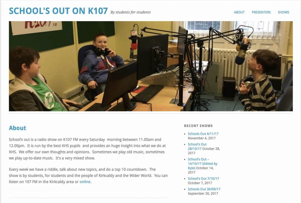 School’s out is a radio show on K107 FM every Saturday morning between 11.00am and 12.00pm. It is run by the best KHS pupils and provides an huge insight into what we do at KHS. We offer our own thoughts and opinions. Sometimes we play old music, sometimes we play up-to-date music. It’s a very mixed show.