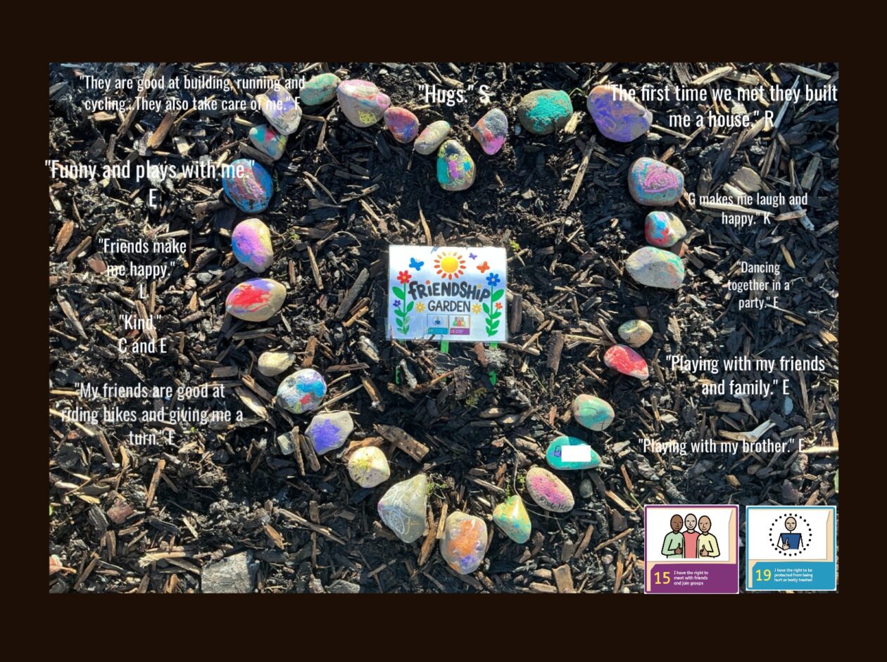 The children located an area in our garden to place their stones which is now a space to highlight and celebrate our unique characteristics, attributes, and is a symbol of how loved we are.