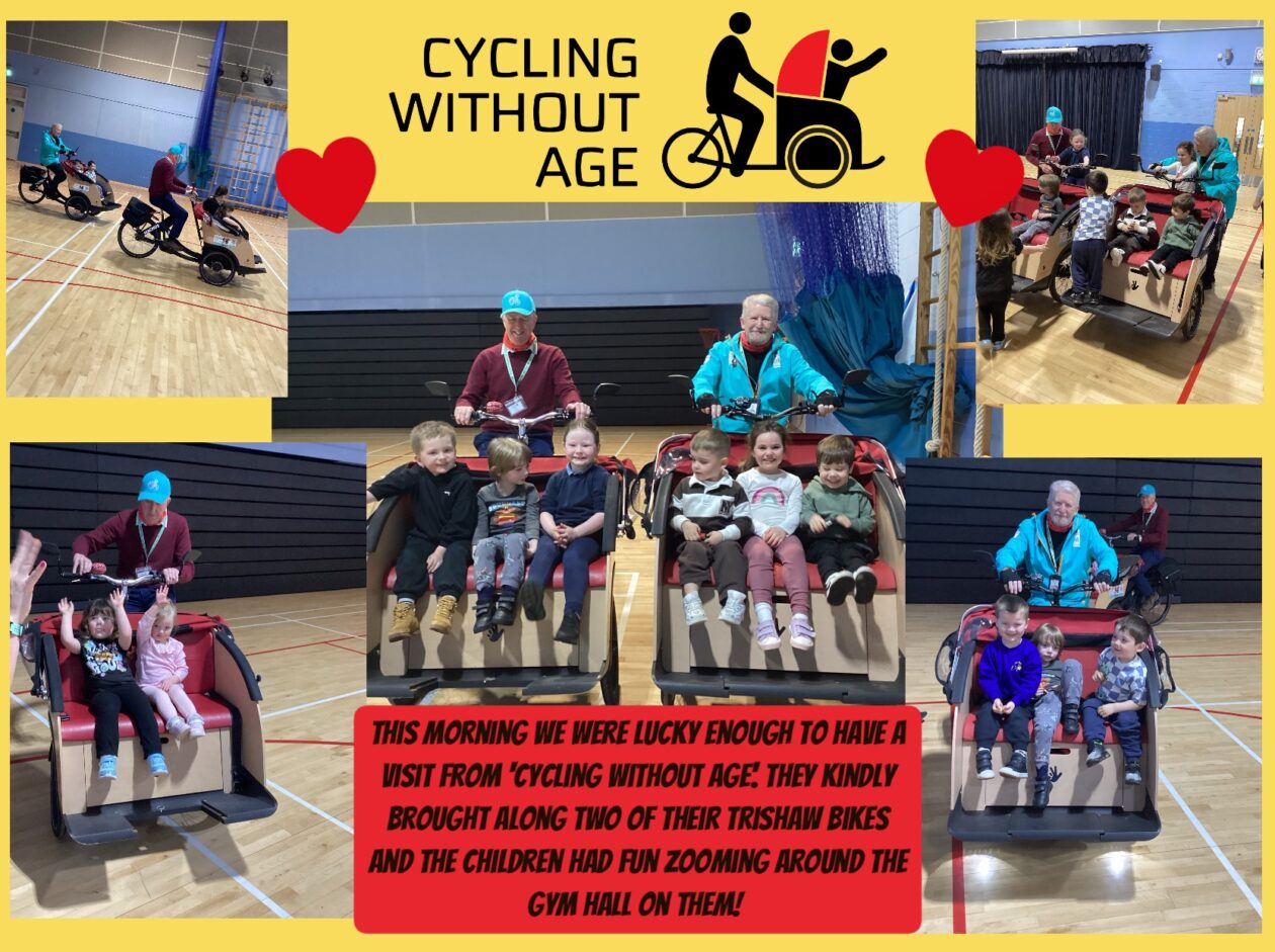 We were lucky to have another visit from Cycling Without Age last week. Gordon, Stevie & Jenny visited the campus with two trishaw bikes. This experience was enjoyed by not only the children but also the staff 😃.