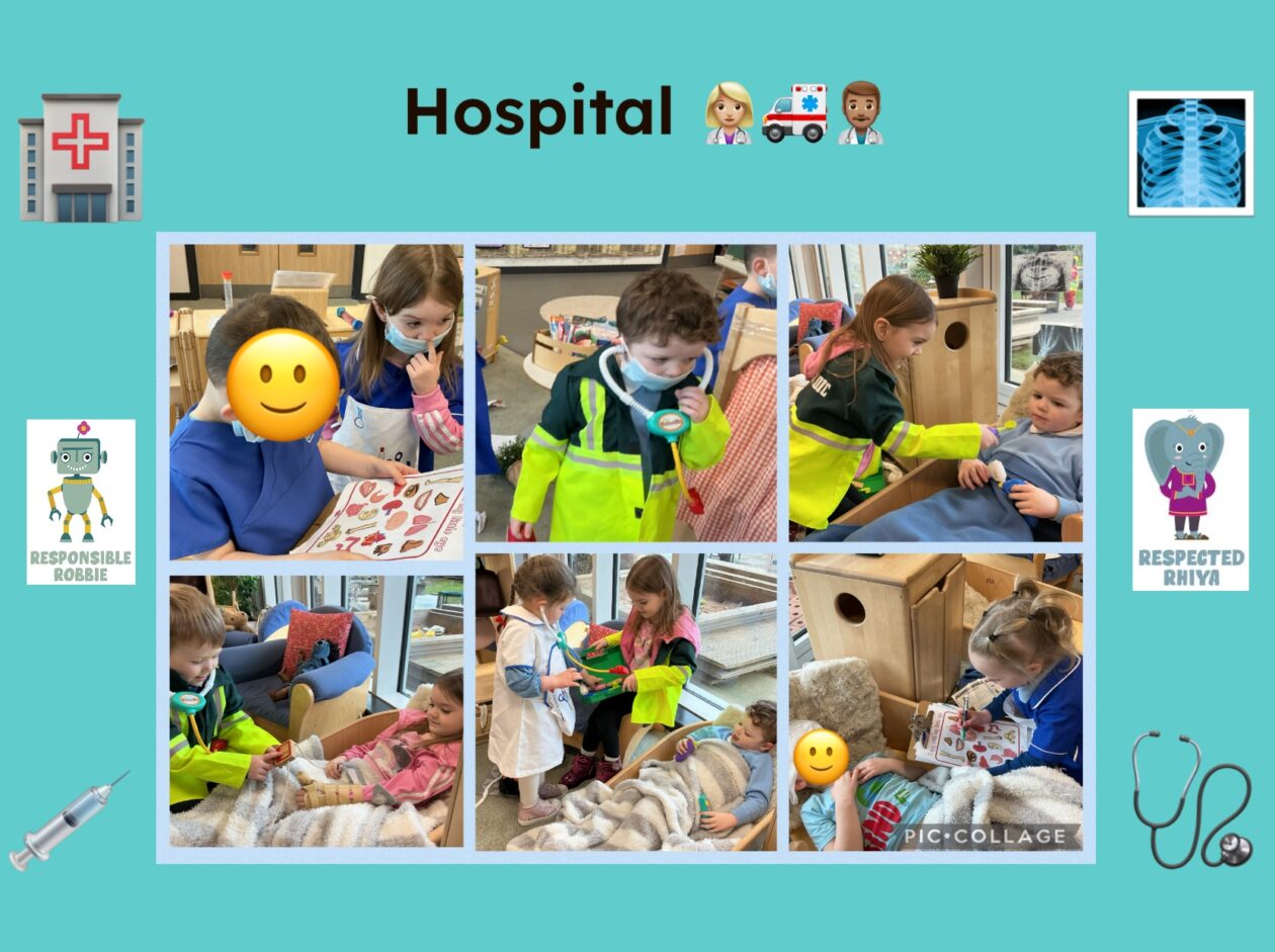 This week in the house corner and in line with our health and wellbeing planning, I name some of the people that can help me in a emergency situation 🚑 We created a hospital to explore events of the emergency services. The children had the opportunity through role play to use their imaginations to create and invent situations that may occur in a hospital setting. Using props and dressing up as doctors, nurses, paramedics and patients, making appointments and caring for their friends until they were feeling better.