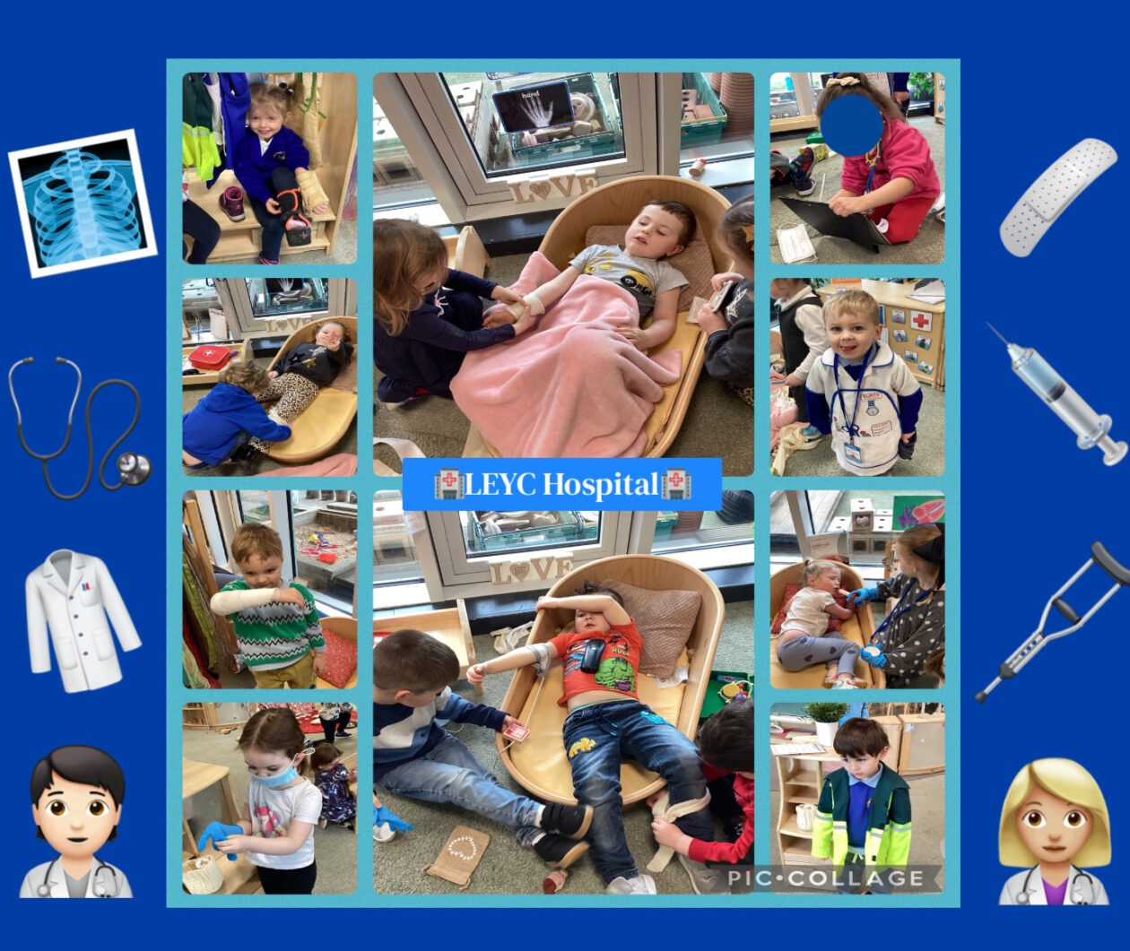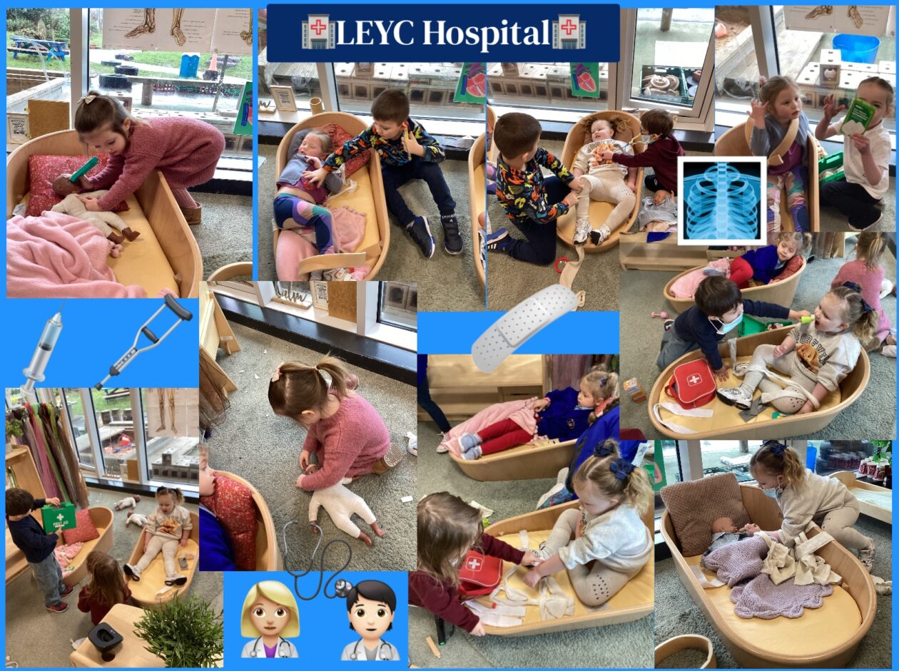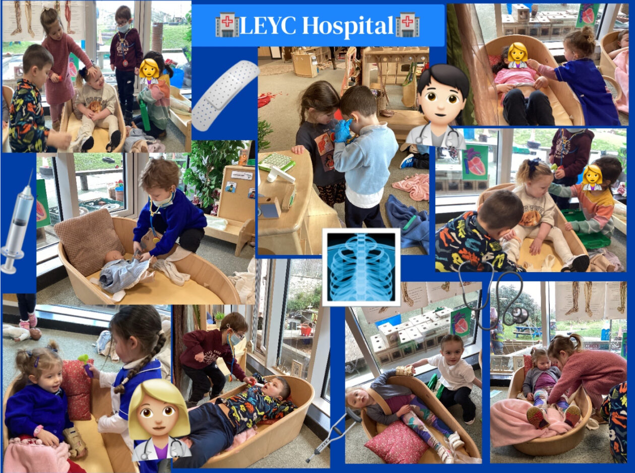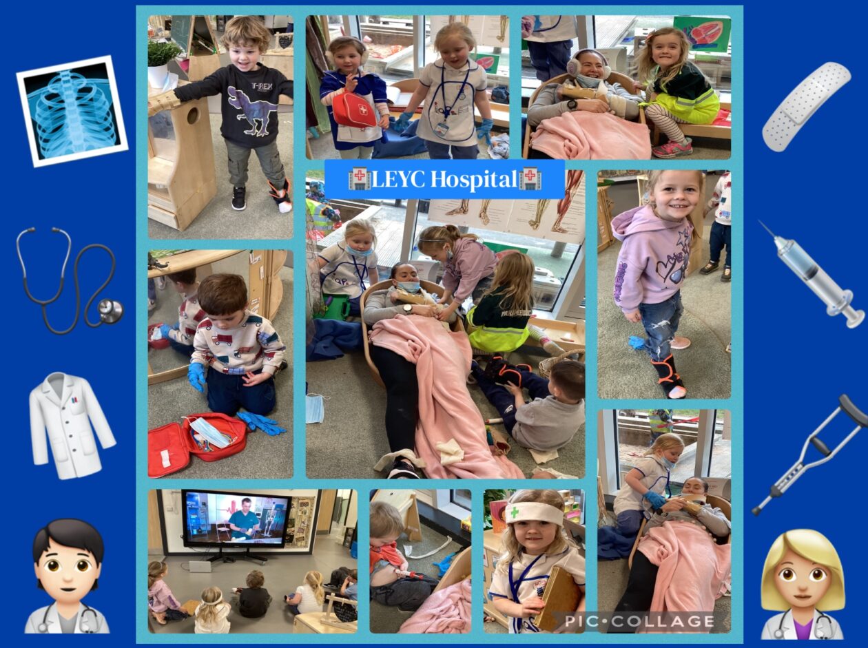 Following on from the children’s interests around ‘People Who Help Us’, this week we have created a hospital at LEYC 🩻🩹🩺The children have been exploring different instruments and resources used by doctors and nurses such as a stethoscope 🩺 bandages/plasters 🩹thermometers, etc. The children have been observed playing appropriately by acting out different real life scenarios (we have some great actors and actresses who were the patients today 🤣) within the hospital role play area. The children were also using appropriate language such as “I am sick”, “you need medicine to make you better”, “do you have a virus?”🦠