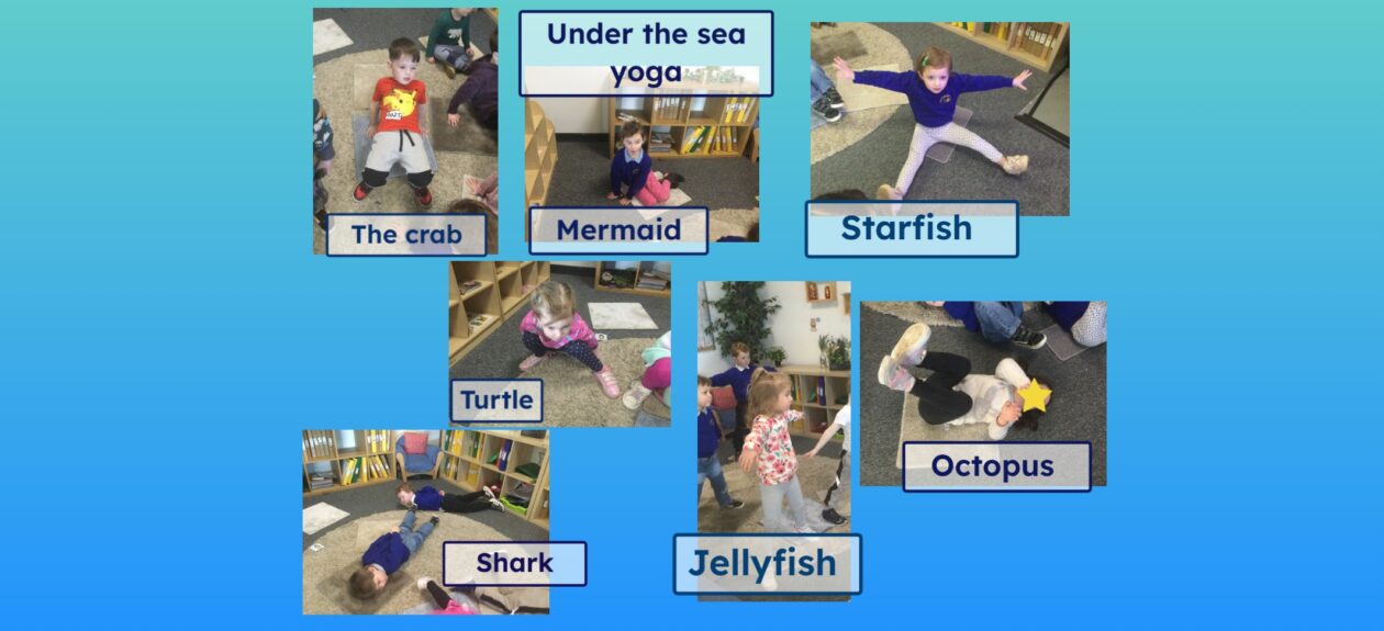 The children took part in underwater yoga, copying the poses from ‘Cosmic Yoga’ on YouTube. The children were learning how aquatic animals adapt and change in their environment for e.g. octopus and fish use camouflage changing colour to help them blend in with their surroundings.