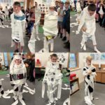 On Friday afternoon we had our Halloween class party. We played musical statues, musical chairs and a mummy game where we got into groups of three and had to cover one of our team members in toilet paper. The best mummy at the end won but Miss Napier didn’t make it easy… Each mummy had to take 10 steps around the class and so much of the toilet paper started falling off!