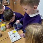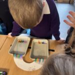 – continued working on our big question “What Makes the World Wonderful?”. The children wanted to know: “What makes a rainbow?” and “Why are flowers colourful?” We carried out experiments to learn about the colours in the rainbow and investigate flowers 🔬