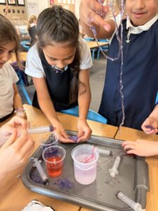 A few weeks ago we were very lucky to have Adele from the University of Glasgow come in and do some science experiments with us.
